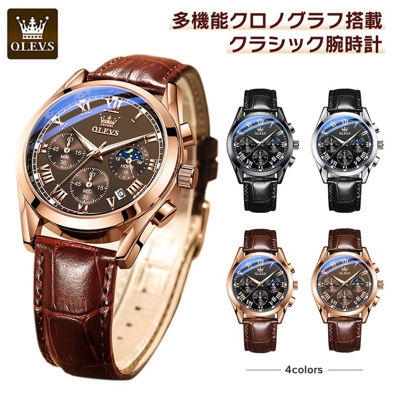腕時計 メンズ レディース 多機能 防水 クラシック 革ベルト クロノグラフ 日付 日常生活防水 アナログ おしゃれ 大人 サンアンドムーン Olevs Zk 009 高上屋 通販 Yahoo ショッピング